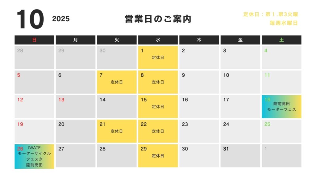 ・10月26日(日)『IWATE モーターサイクルフェスタ2025三陸試乗会in陸前高田』高田松原運動広場 東側駐車場 特設会場