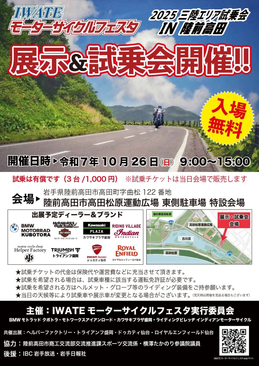 Home > イベント情報 > IWATEモーターサイクルフェスタ2025 三陸エリア試乗会IN陸前高田