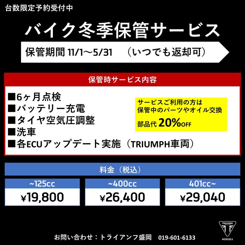 安心の屋内保管と定期的なバッテリー充電を行う「冬季バイク保管サービス」を実施しております。