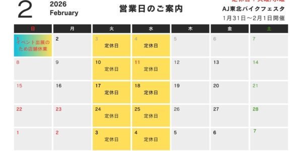 トライアンフ盛岡 2月営業日のお知らせ