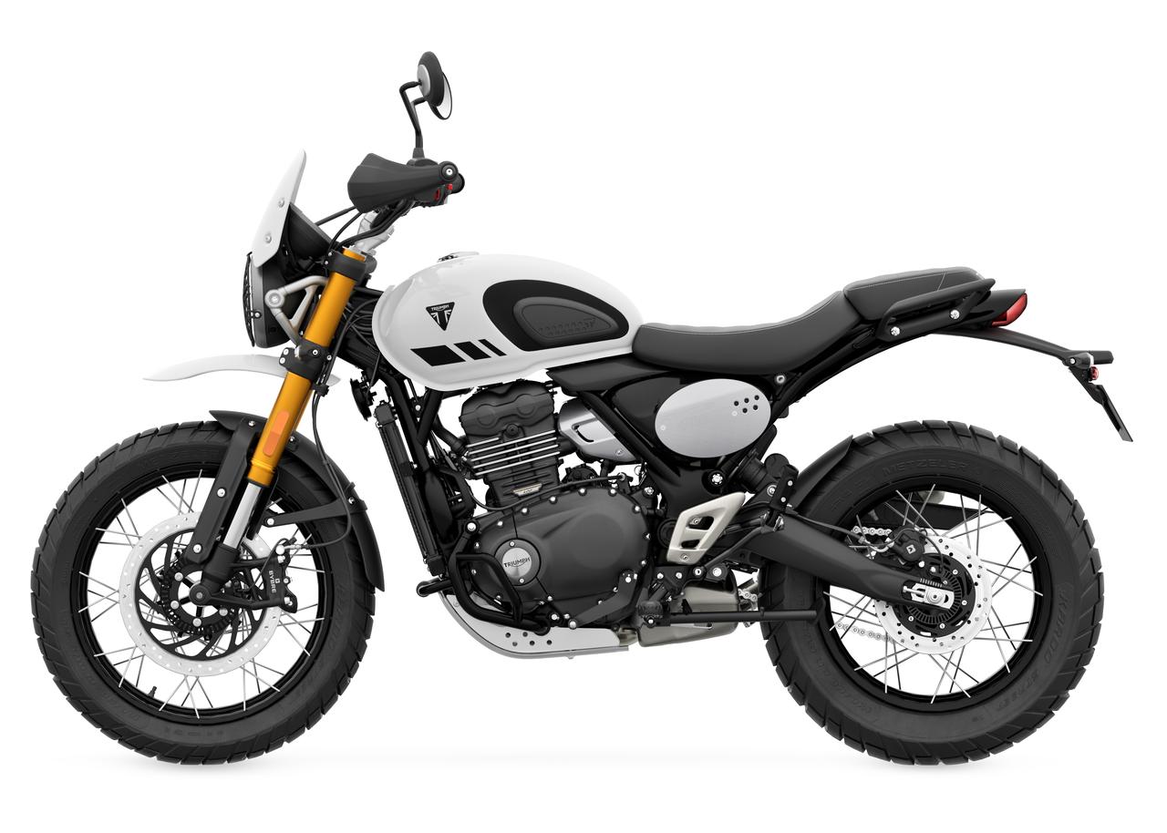 トライアンフスクランブラーのデザインDNAを受け継ぐ凜としたシルエット。