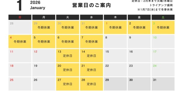 トライアンフ盛岡 2026年 1月営業日のお知らせ
